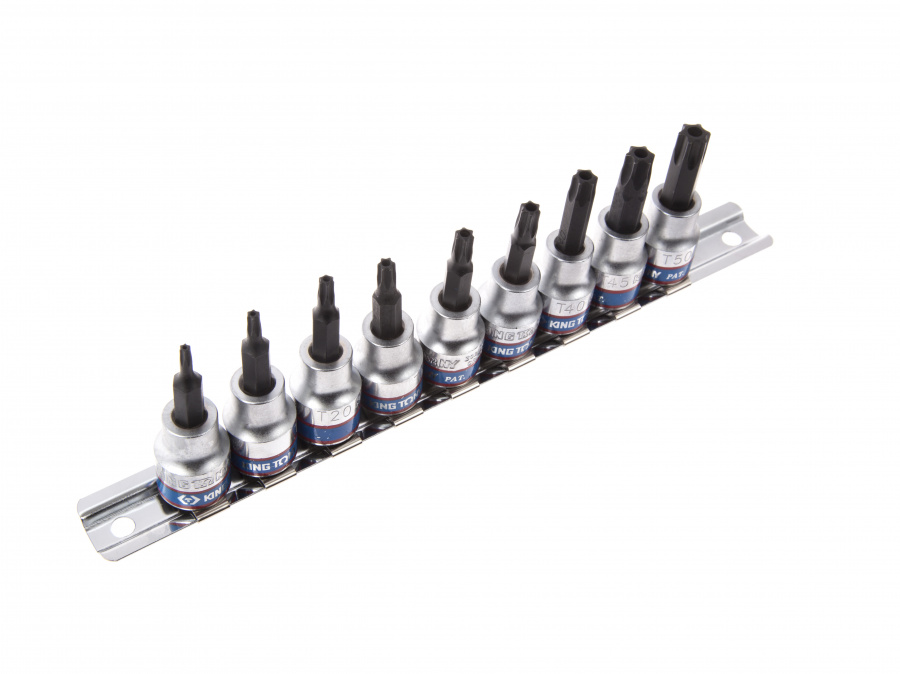 - Набор KING TONY торцевых насадок 3/8", TORX, Т10-Т50 мм, L = 50 мм, с отверстием, 9 предметов