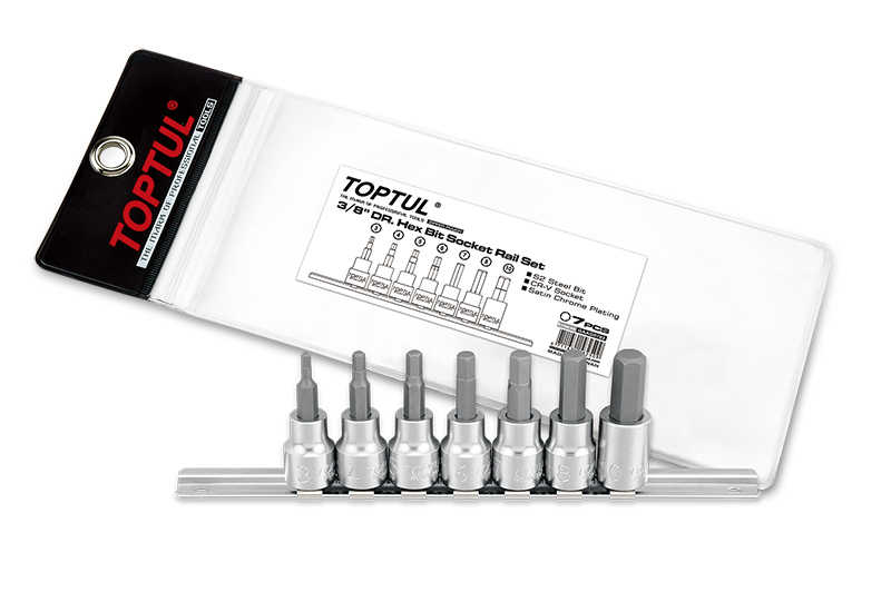 Набор TOPTUL шестигранными торцевых головок 3/8" с вставками 45568 мм L=48 мм на планке 7 предметов