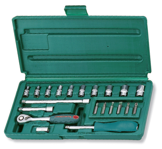 - Набор Jonnesway головок торцевых 1/4"DR, 4-13 мм, 21 предмет