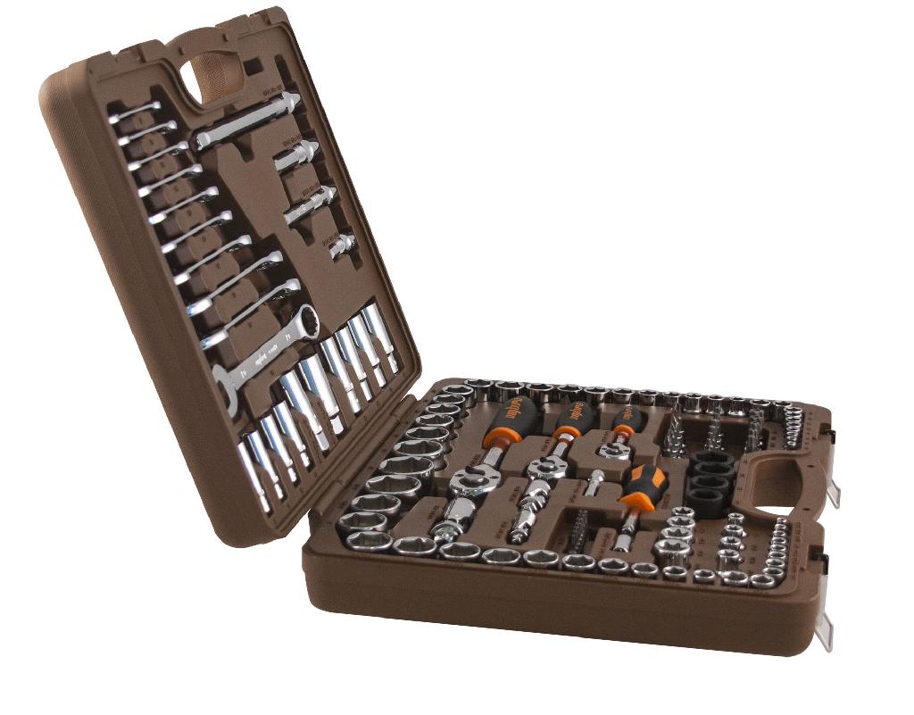 ОписаниеНабор инструмента, комплектация которого расчитана на производство работ по техническому обслуживанию атомобильной техники в условиях ремонтных мастерских. Инструменты, входящие в состав набора, позволяют обслуживать крепежные детали метрических и дюймовых размеров. Ассортимент дополнен торцевыми головками с рабочим профилем TORX® и головками для механизированного инструмента распространенных размеров.