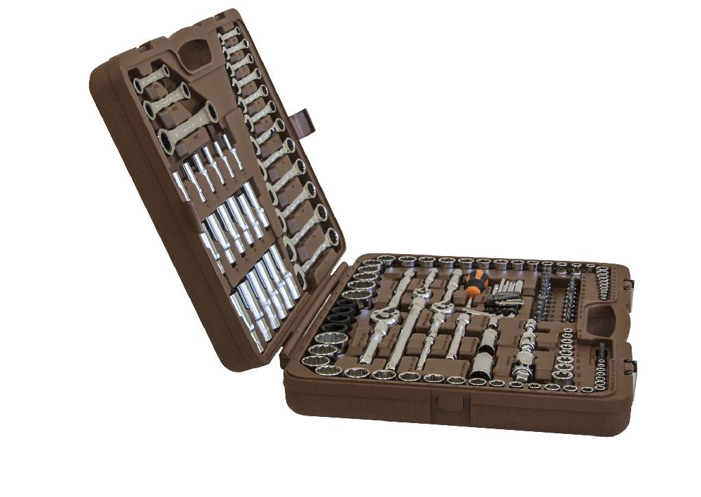 ОписаниеСпециальный набор инструмента, комплектация которого расчитана на производство работ по техническому обслуживанию атомобильной техники в условиях ремонтных мастерских. Инструменты, входящие в состав набора, позволяют обслуживать крепежные детали метрических и дюймовых размеров. Ассортимент дополнен накидными ключами с храповыми механизмами и головками для механизированного инструмента распространенных размеров.