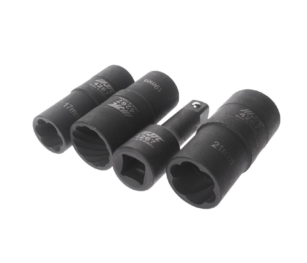 Набор головок для секретных болтов и гаек двухсторонних 17,19,21мм 4 предмета JTC