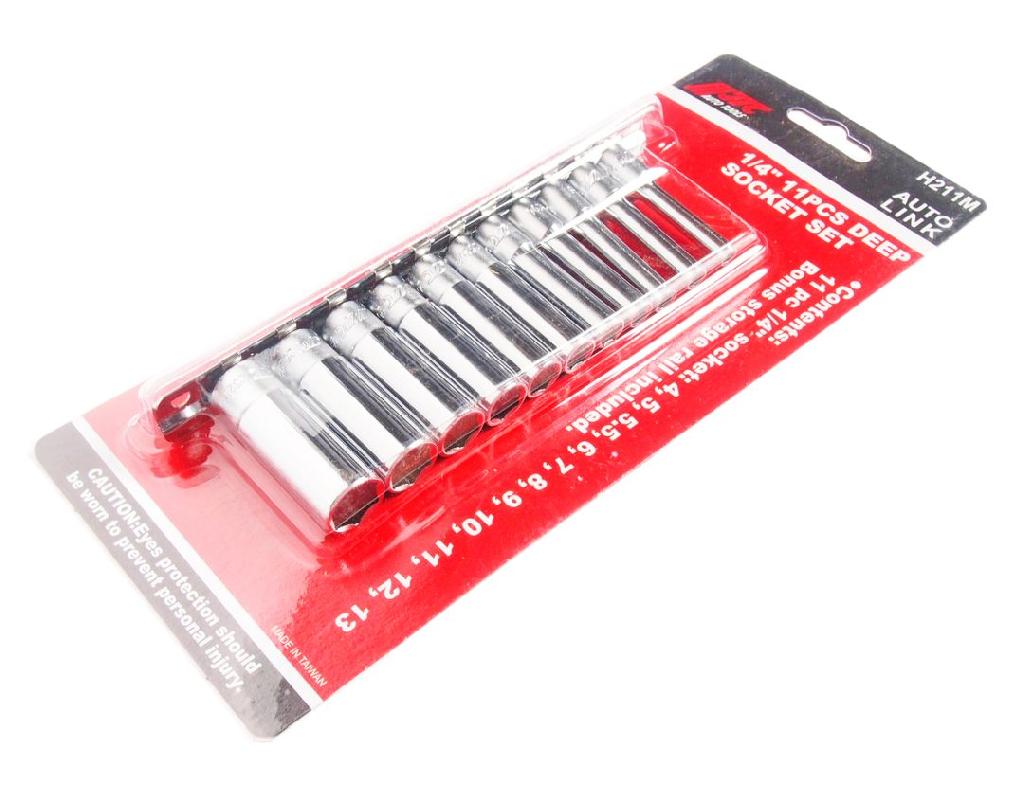 11 ед. головки 1/4": 4, 5, 5.5, 6, 7, 8, 9, 10, 11, 12, 13 мм.