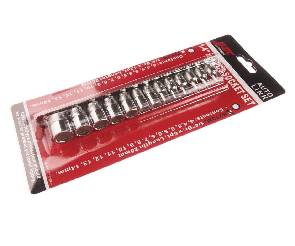- Набор головок торцевых 1/4" 6-ти гранных 04-14мм L=25мм 13 предметов JTC