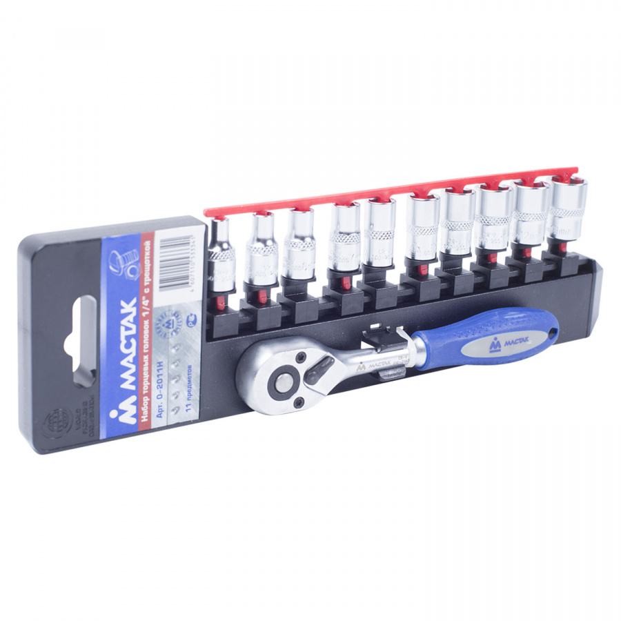 - Набор торцевых головок с трещоткой 1/4", 4-13 мм, 11 предметов МАСТАК 0-2011H