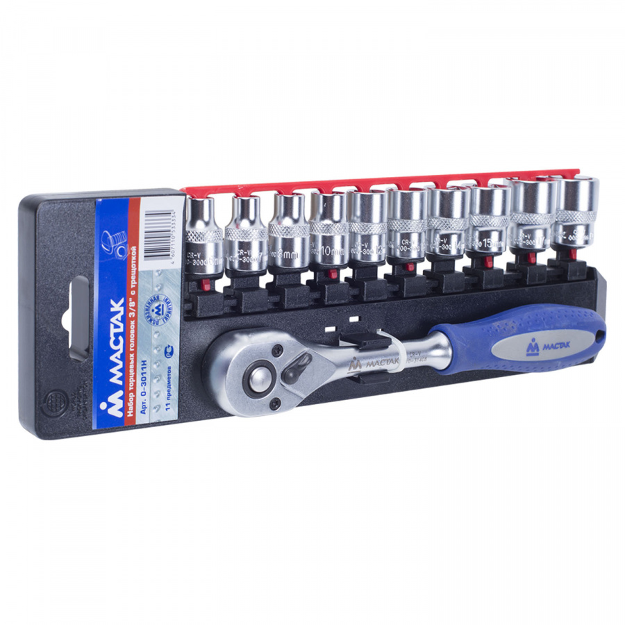Набор МАСТАК торцевых головок с трещоткой 3/8", 43617 мм, 11 предметов