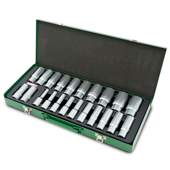 - Набор TOPTUL головок удлиненных 1/2" 6-гранных мм, 22 предмета в метал. ящике