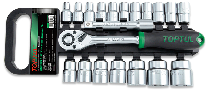 Набор TOPTUL торцевых головок 1/2" 6-гр. 8-32 мм с трещоткой и удлинителем 20 пр.