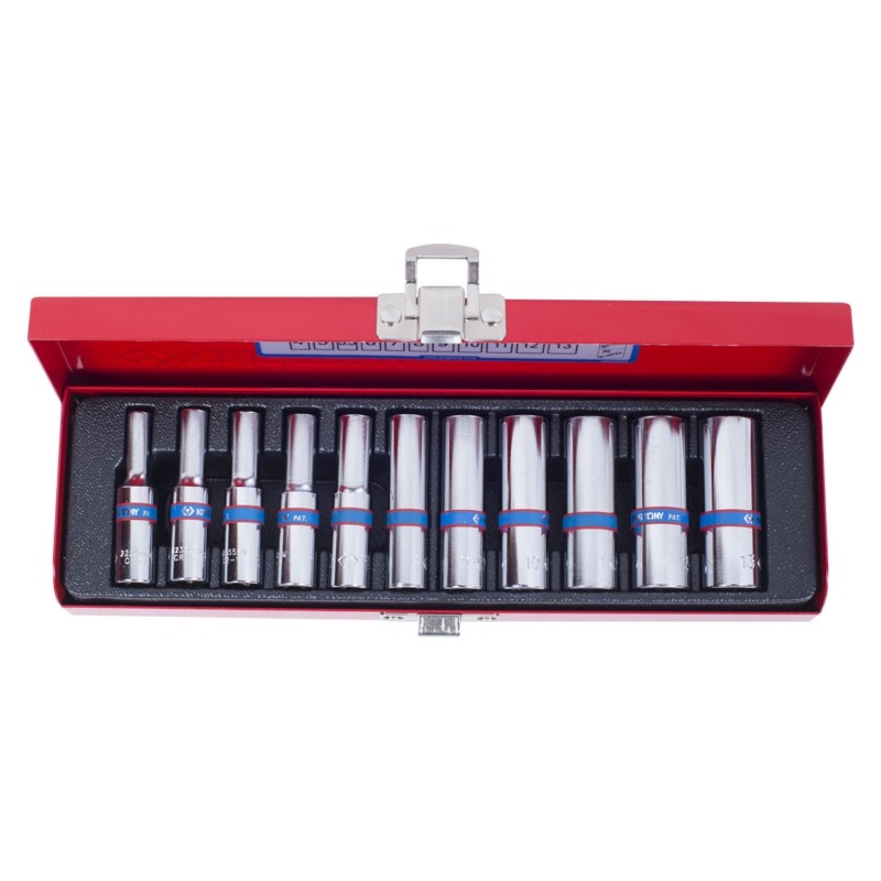 - Набор KING TONY глубоких торцевых головок 1/4", шестигранные, 4-13 мм, 11 предметов