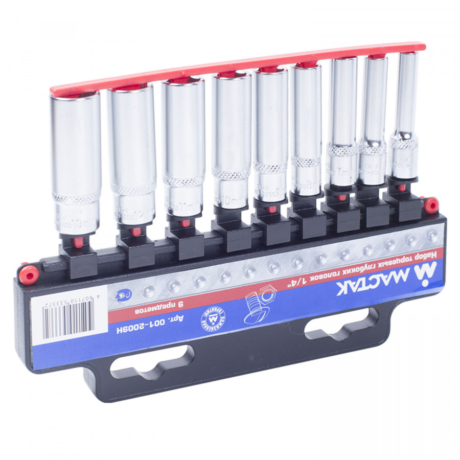 - Набор торцевых глубоких головок 1/4", 5-13 мм, 9 предметов МАСТАК 001-2009H