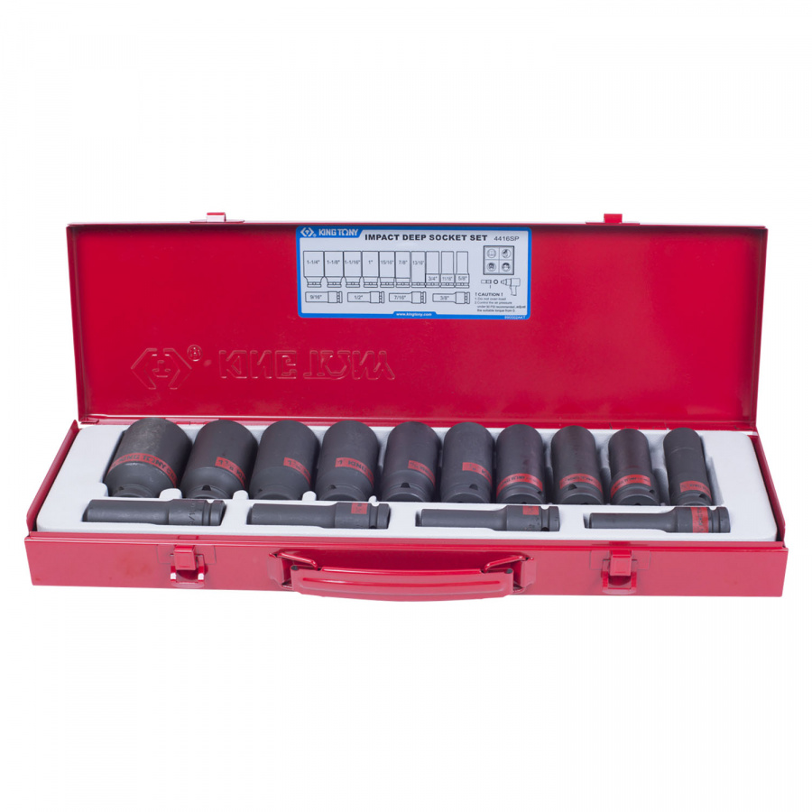 - Набор KING TONY ударных глубоких торцевых головок 1/2", шестигранные, 3/8"-1&1/4", 15 предметов