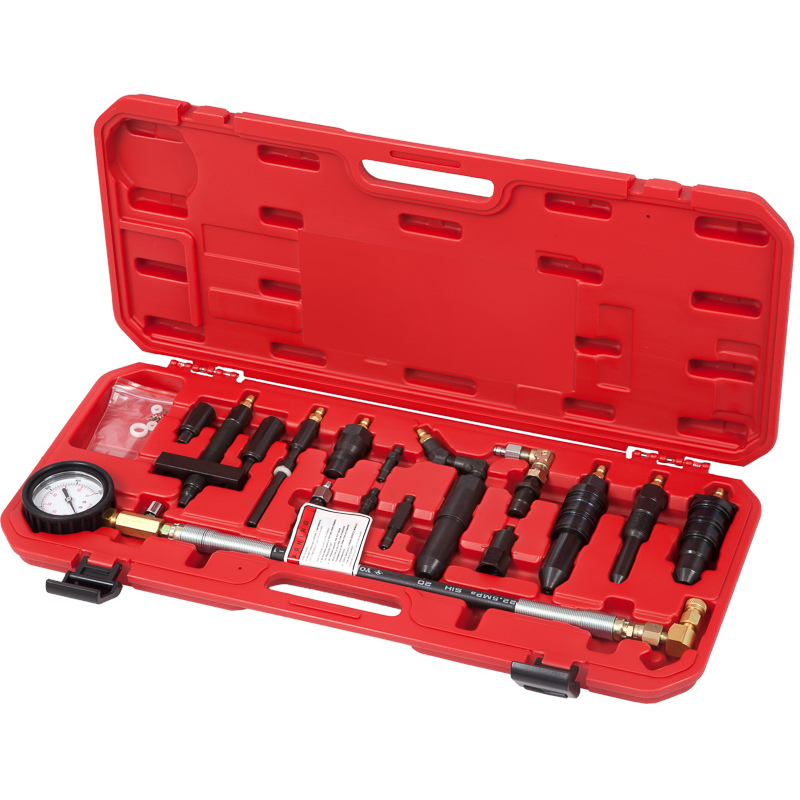 Манометр имеет встроенный предохранительный клапан давления, что позволяет производить повторный замер без снятия. Армированный гибкий шланг оснащён быстросъёмным переходником, позволяющим быстро и легко менять адаптеры для применения на разных автомобилях.