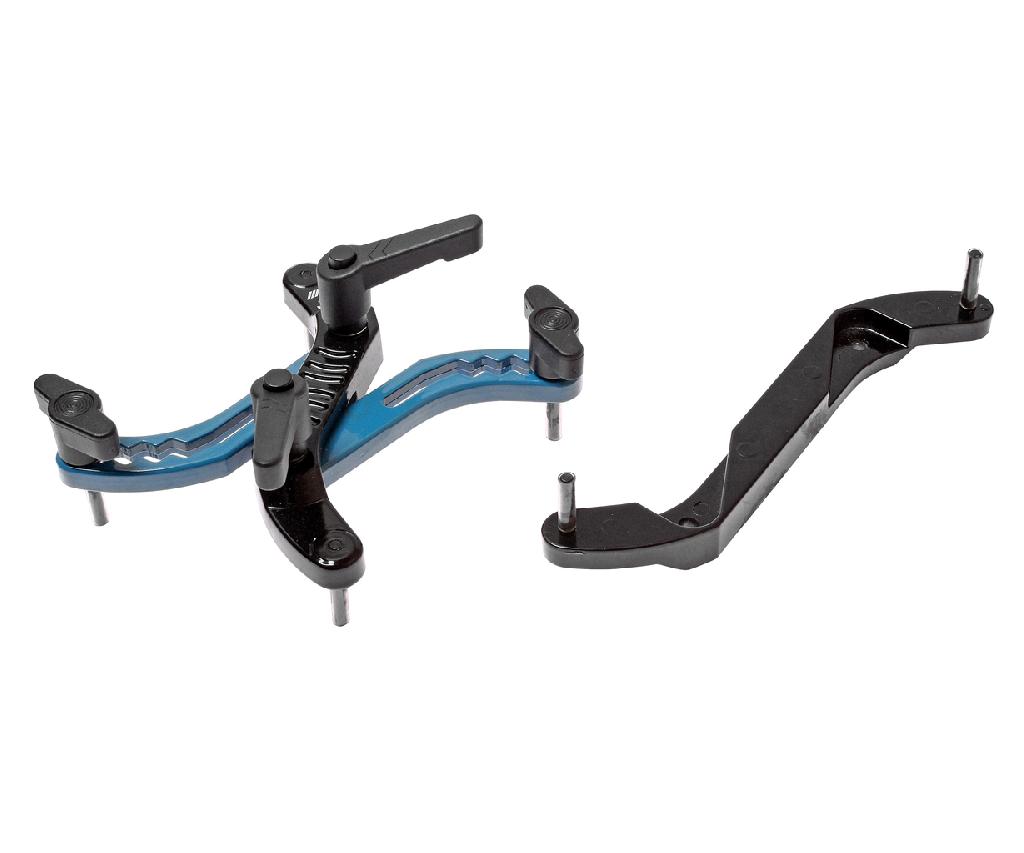 В комплекте поставляется дополнительный удлиненный фиксатор, предназначенный для шкивов распредвалов, расположенных на большем расстоянии друг от друга.