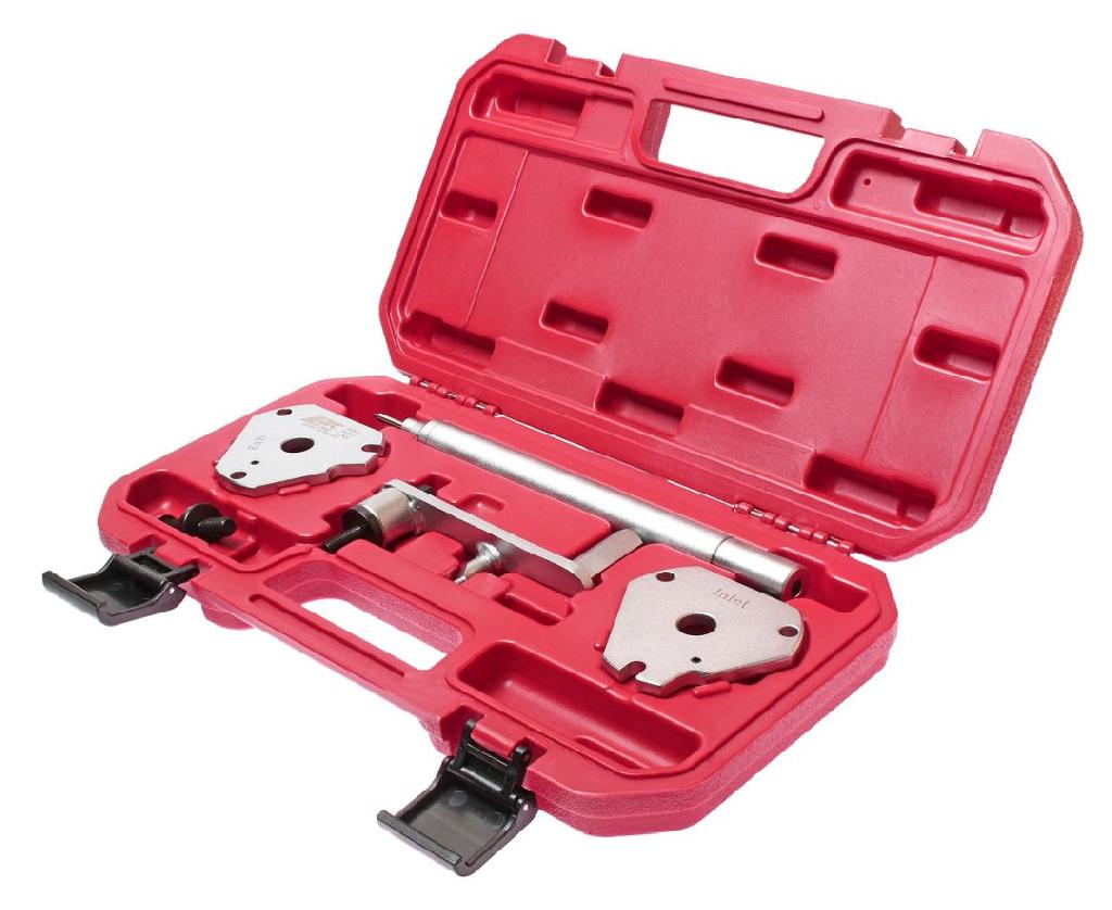ОписаниеВ набор входят инструменты для блокировки роликов распредвала и устройство для начального натяжения ремня.