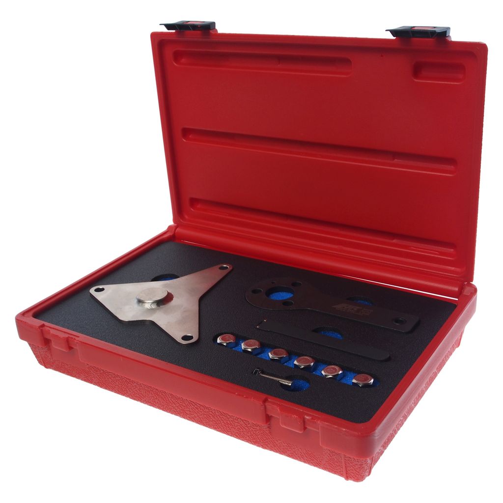 ОписаниеКомплект состоит из инструмента, необходимого для настройки и фиксации фаз газораспределения в бензиновых двигателях с ременным приводом.