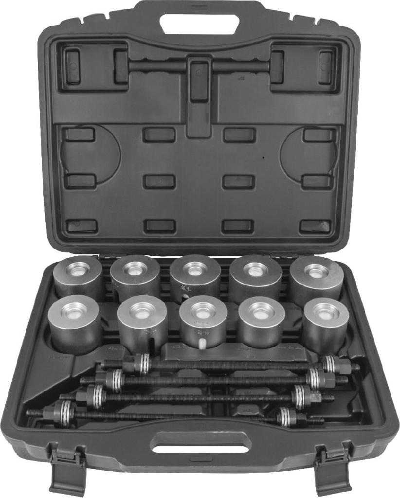ОписаниеНАБОР ПРЕДНАЗНАЧЕН ДЛЯ ПРОИЗВОДСТВА РАБОТ ПО ЗАМЕНЕ САЙЛЕНТБЛОКОВ ПРИ ОБСЛУЖИВАНИИ ПОДВЕСКИ АВТОМОБИЛЕЙ. ШИРОКИЙ ДИАПАЗОН РАЗМЕРОВ ОПРАВОК, ВХОДЯЩИХ В КОМПЛЕКТ НАБОРА, ПОЗВОЛЯЕТ ОБСЛУЖИВАТЬ МАКСИМАЛЬНО ВОЗМОЖНЫЙ СПЕКТР ТРАНСПОРТНЫХ СРЕДСТВ.