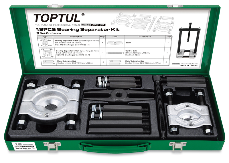 - Набор TOPTUL съемников сепараторного типа 30-50, 50-75 мм, 12 предметов в метал. кейсе