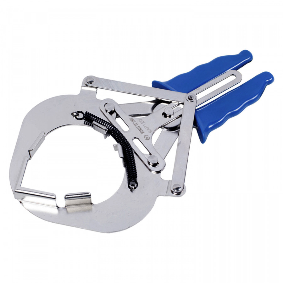 Специальный удерживающий механизм щипцов предотвращает поломку или повреждение кольца во время установки или снятия.