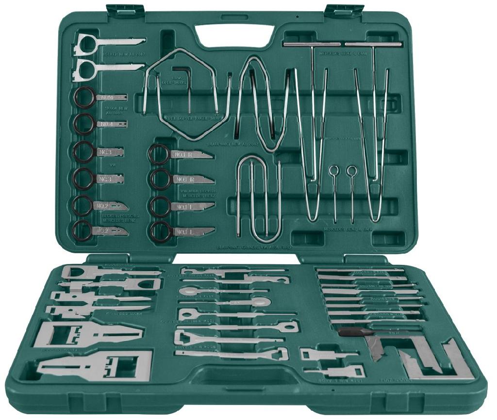 ОписаниеНабор специальных приспособлений для демонтажа и установки автомобильной радиоаппаратуры. Применяется для обслуживания установленного оборудования (по маркам производителей аппаратуры и автомобилей):Крюк U-образный 2 шт. (FORD/VW/AUDI/GRUNDIG/BLAUPUNKT)Ключ пятигранный 1 шт. (BMW)Ключи 4 шт. (VW/AUDI/MB/BECKER)Ключи 2 шт. (MB/PORSHE/BECKER)Ключи 2 шт. (VW)Ключ шестигранный 1 шт. (BMW/OPEL/ALPINE)Ключи 2 шт. (BECKER NEW)Ключи 2 шт. (SKODA NEW)Ключи 2 шт. (BLAUPUNKT NEW)Ключи 2 шт. (FIAT BRAVA)Ключи U-образные шестигранные 2 шт. (OPEL)Ключи 6 шт. (MB/BMW)Ключи 2 шт. (KENWOOD до 2001 г.в.)Ключи 2 шт. (SONY после 2002 г.в.)Ключи 2 шт. (KENWOOD после 2001 г.в.)Ключи 2 шт. (PIONEEP/JVC)Ключи 2 шт. (SONY до 2001 г.в.)Ключи 2 шт. (PANASONIC)Ключи 2 шт. (KENWOOD до 1998 г.в.)Ключи 2 шт. (KENWOOD MASK)Ключи 2 шт. (CLARION NEW)Ключи 2 шт. (CLARION OLD)Ключи 2 шт. (PANASONIC 2006)Ключи 2 шт. (SONY IDIC 2005)