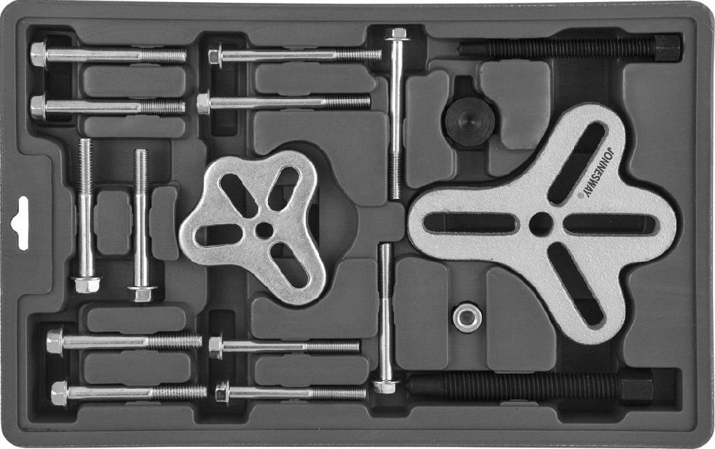- Съемник Jonnesway многофункциональный с болтовыми захватами в наборе, диапазон захватов 30-120 мм