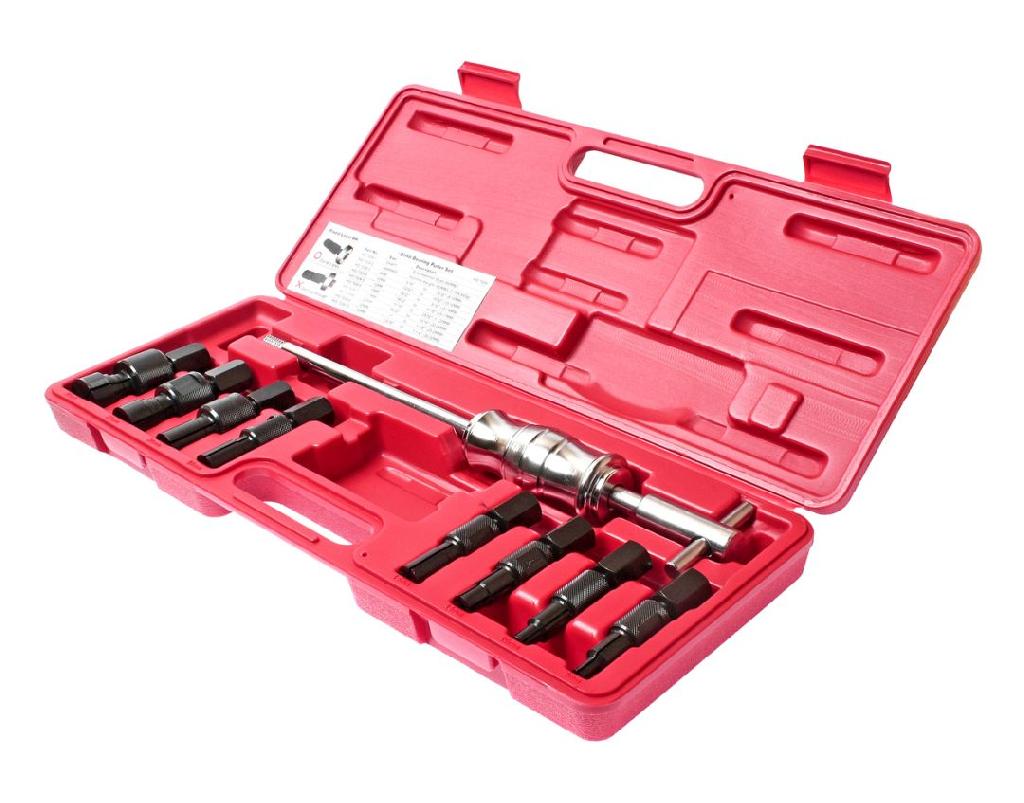 Набор представляет собой специализированную группу инструментов, предназначенных для демонтажа при обслуживании подшипников, зубчатых колес, шкивов и иных частей привода.