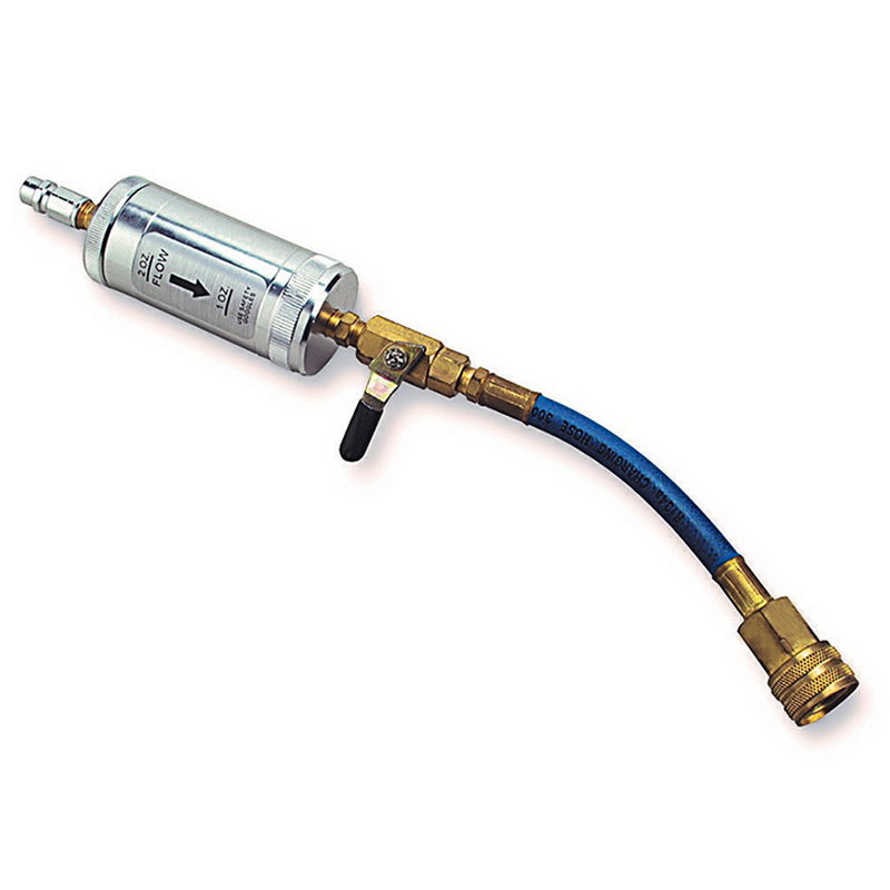 Цилиндр подсоединяется в магистраль между баллоном с фреоном и манометрическим коллектором. Необходимое количество масла заправляется вместе с потоком хладагента. -