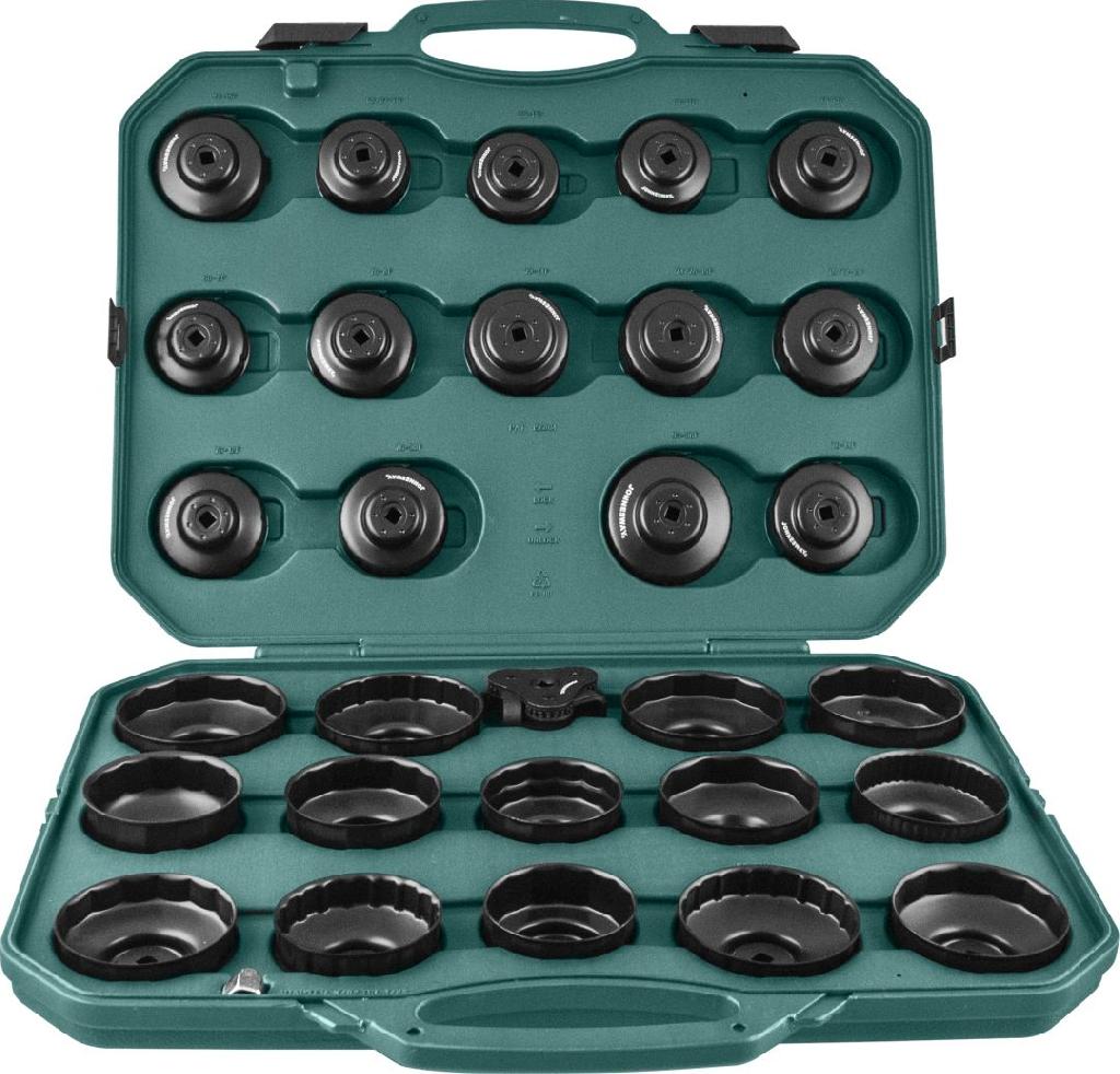 - Комплект Jonnesway чашек для съема масляных фильтров 65-120 мм, 30 предметов
