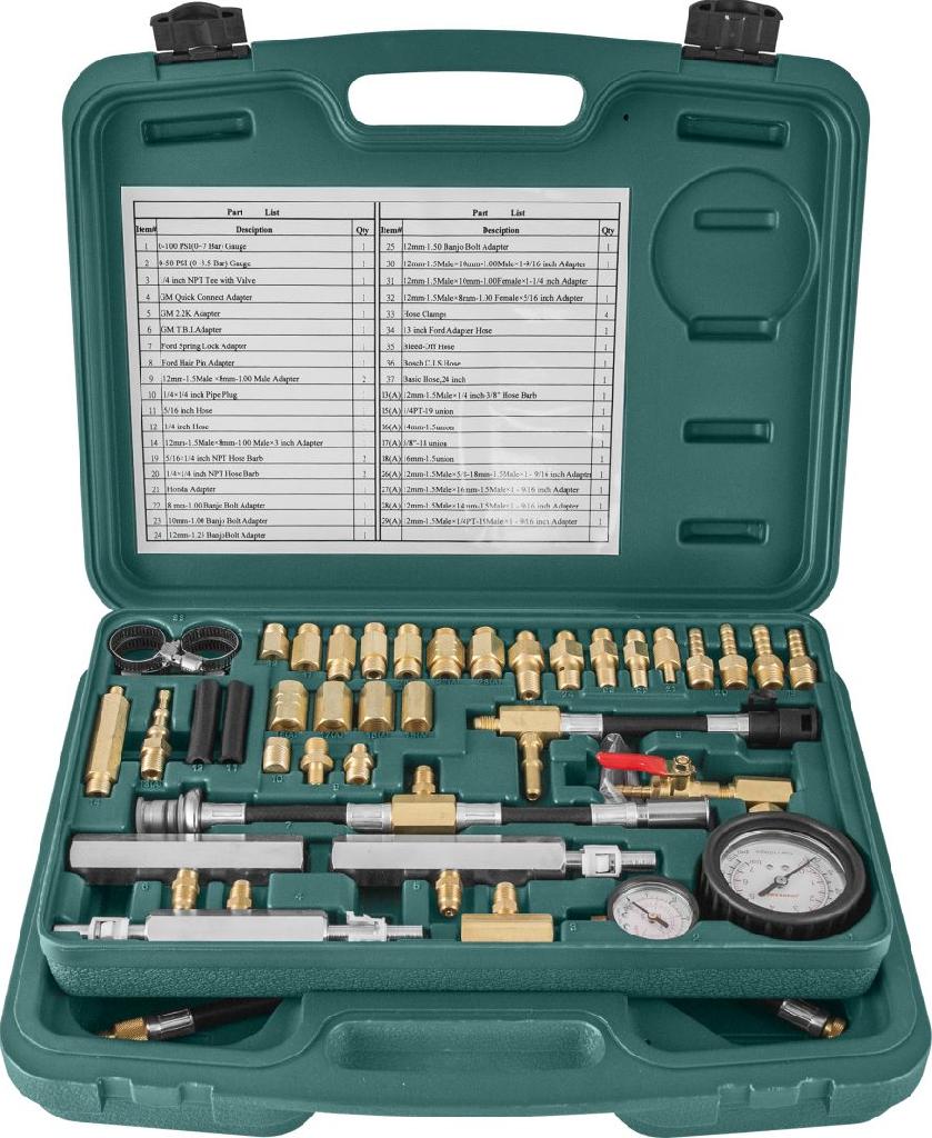 ОписаниеНабор применяется для проведения диагностики топливных систем впрыска бензиновых двигателей и определения неисправностей методом измерения давления в участках магистралей и устройств системы питания. Большая гамма адаптеров позволяет производить измерения давления в топливной системе почти на всех автомобилях отечественного и импортного производства. Инструмент рекомендован к использованию при тестировании систем питания автомобилей: ACURA, HONDA, MAZDA, SUZUKI, TOYOTA, AUDI, MERCEDES, PEUGEOT, PORSCHE, VW, VOLVO и других, оборудованных системами питания типа: BOSCH C.I.S/C.I.S.E и аналогичных по принципу действия, механическими системами впрыска (K-JETRONIC, KE-JETRONIC), системами впрыска с электронным управлением (L, LH, LE–JETRONIC, GM-TBI и др.), «Моновпрыск» (MONOTRONIC и др.).