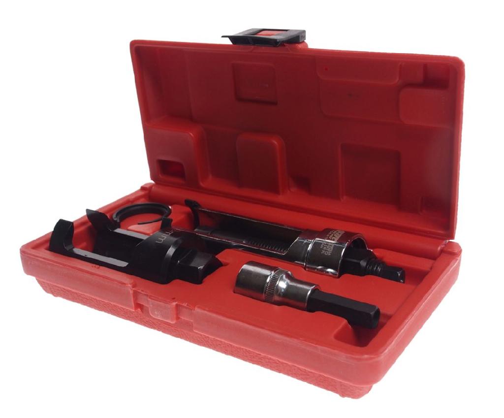 Имеет гнездо для снятия крышки форсунки, защитный шестигранный ключ для снятия внутренней части форсунки и съемник для снятия форсунки без повреждения крышки кулачка.