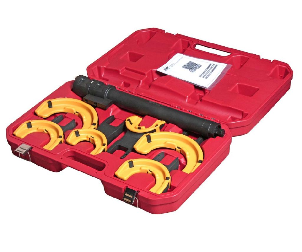 - Набор инструментов для стяжки пружин с пневмоприводом (3 пары захватов, ход 317мм) в кейсе JTC