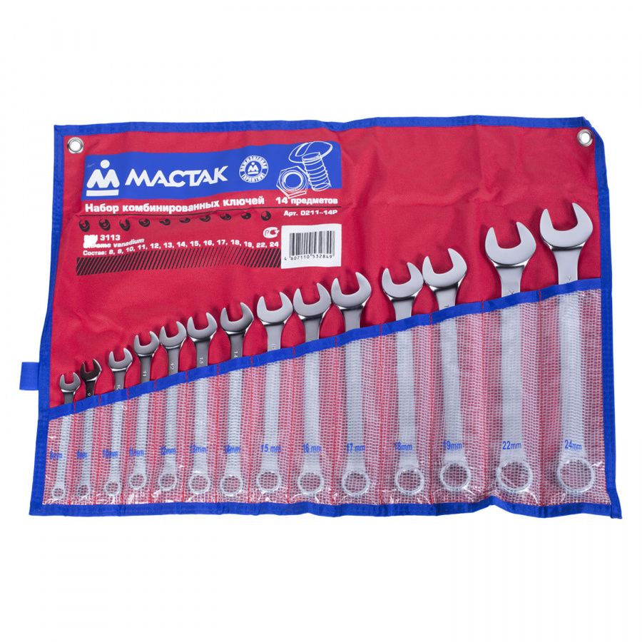 Набор МАСТАК комбинированных ключей, 8-24 мм, 14 предметов