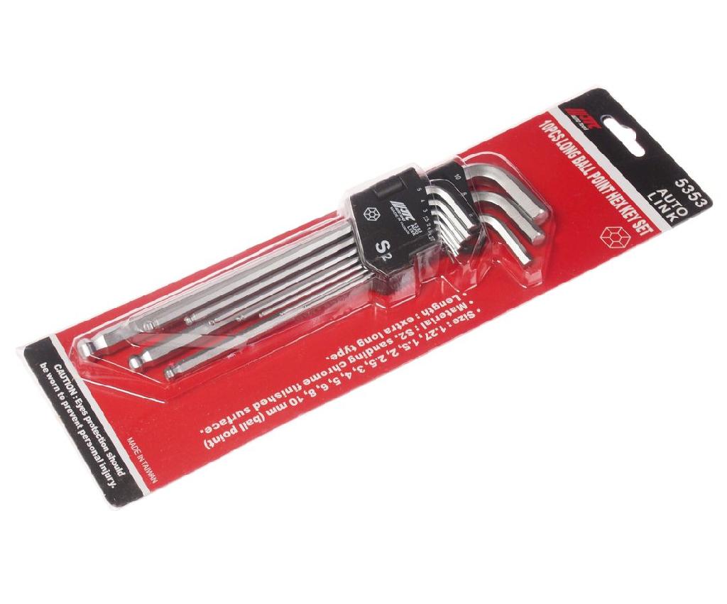 - Набор ключей шестигранных 1.27-10мм Г-образных экстрадлинных с шаром 10 предметов JTC