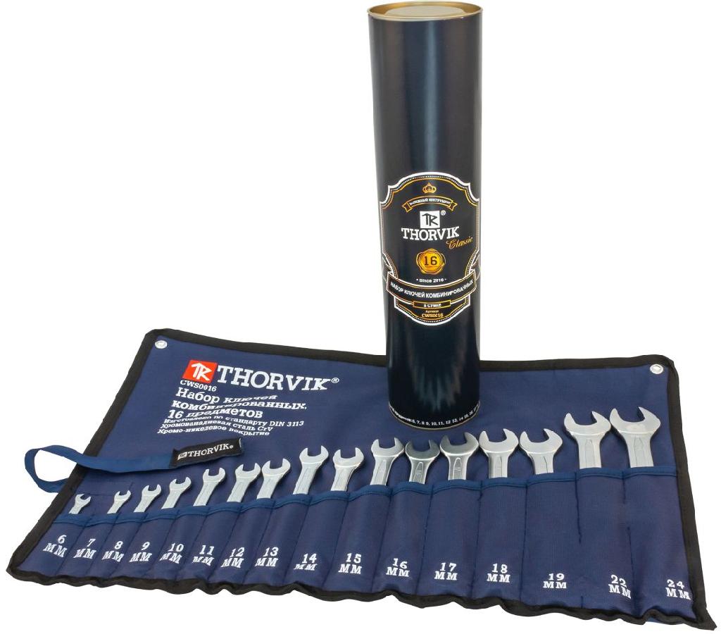 Набор ключей комбинированных в сумке, 16 предметов (6-19, 22, 24 мм) (в тубусе Thorvik)