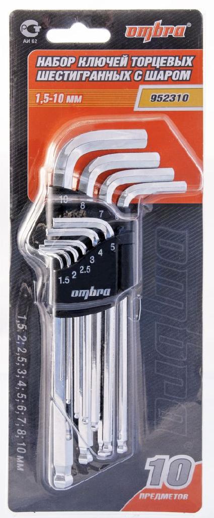 - Набор Ombra ключей торцевых шестигранных с шаром H1.5-H10, 10 предметов