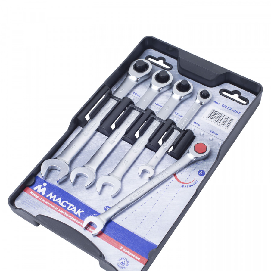 - Набор МАСТАК комбинированных трещоточных ключей, 8-14 мм, 5 предметов