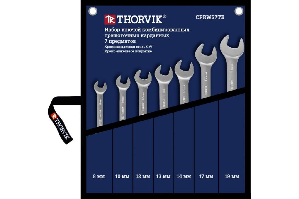 Набор ключей Thorvik гаечных комбинированных трещоточных карданных в сумке, 8-19 мм, 7 предметов