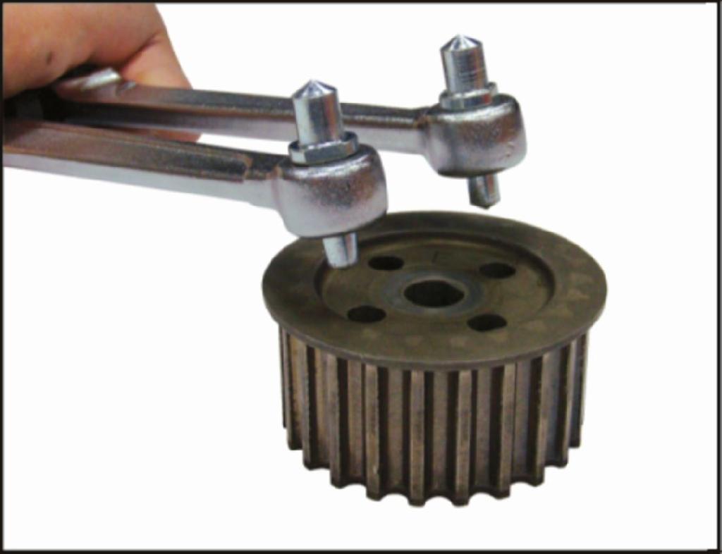 ОписаниеИнструмент изготовлен из высококачественной стали и предназначен для фиксации или снятия шкивов с двумя отверстиями.