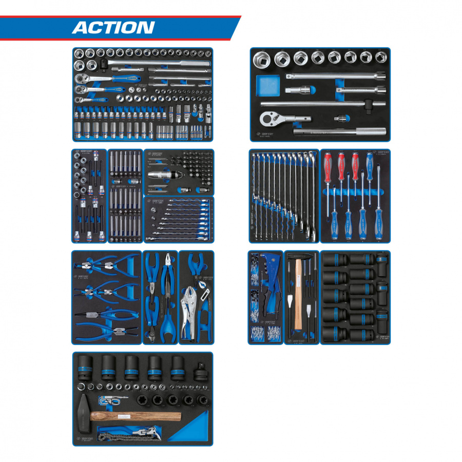 - Набор инструментов "ACTION" для тележки, 15 ложементов, 327 предметов KING TONY 934-327MRVD