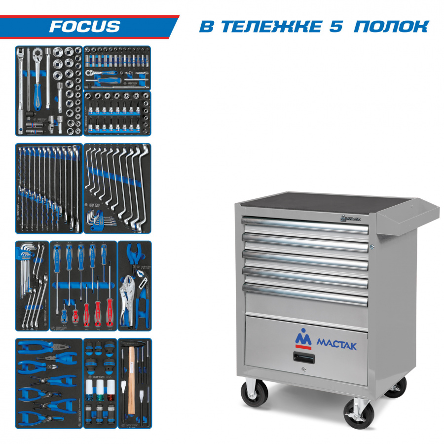- Набор инструментов "FOCUS" в серой тележке, 188 предметов KING TONY 934-188AMG