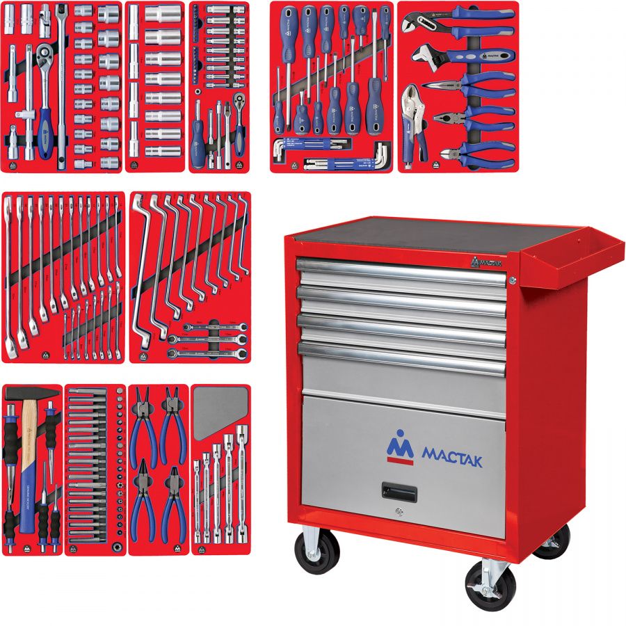 • Набор МАСТАК инструментов "МАСТЕР" в красной тележке, 205 предметов