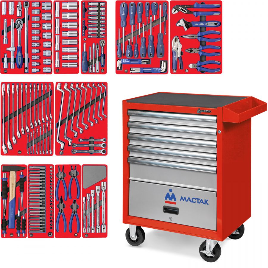 - Набор МАСТАК инструментов "МАСТЕР" в красной тележке, 205 предметов
