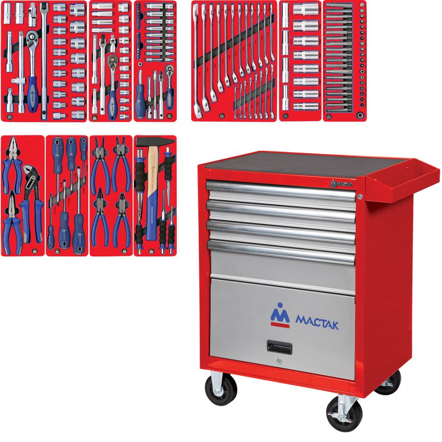 - Набор МАСТАК инструментов "СТАНДАРТ" в красной тележке, 186 предметов