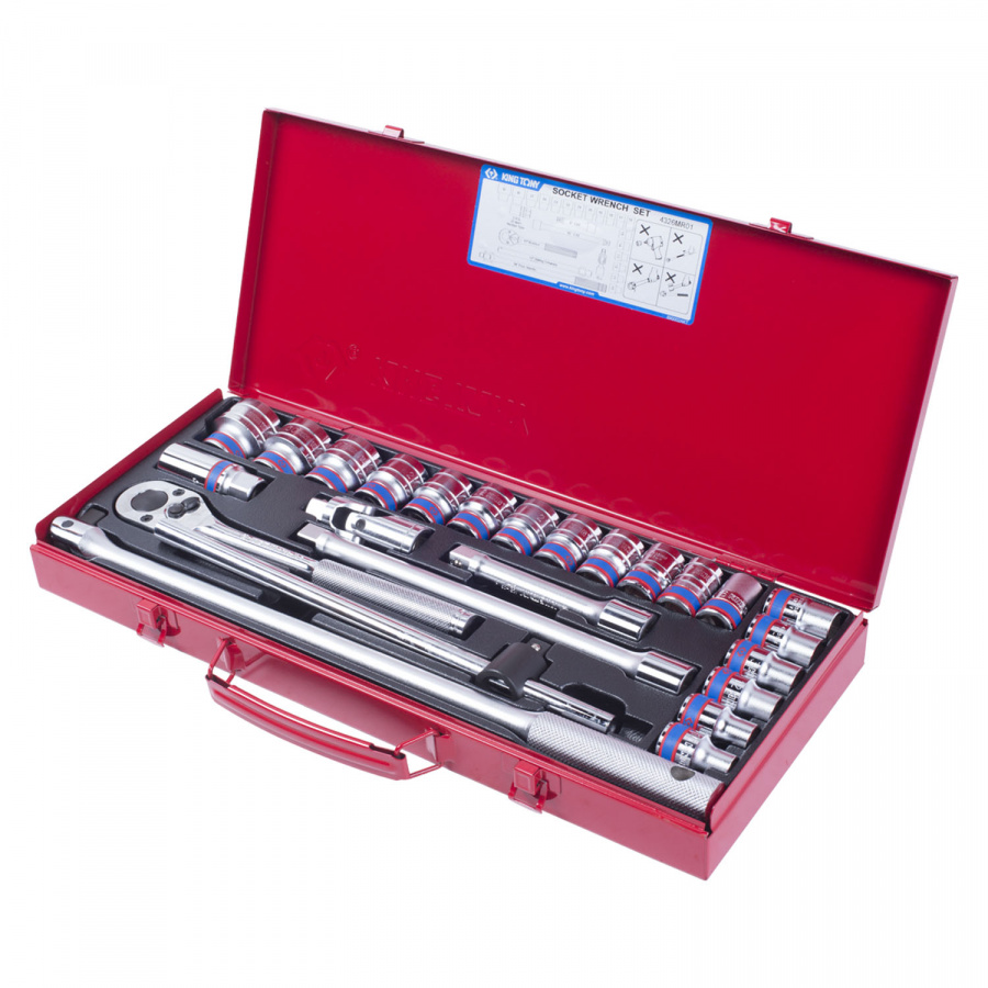 - Набор KING TONY торцевых головок с принадлежностями 1/2", шестигранные, 11963 мм, 24 предмета