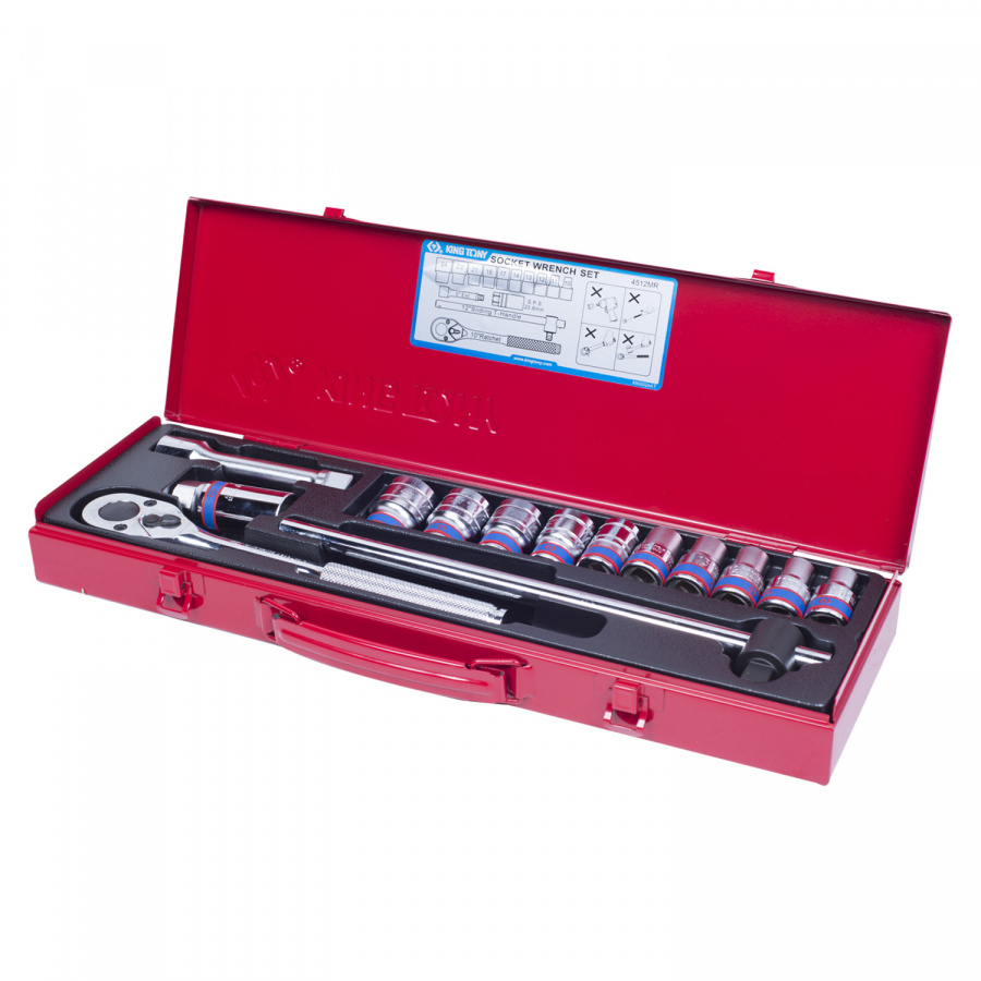 - Набор KING TONY торцевых головок с принадлежностями 1/2", шестигранные, 45566 мм, 14 предметов