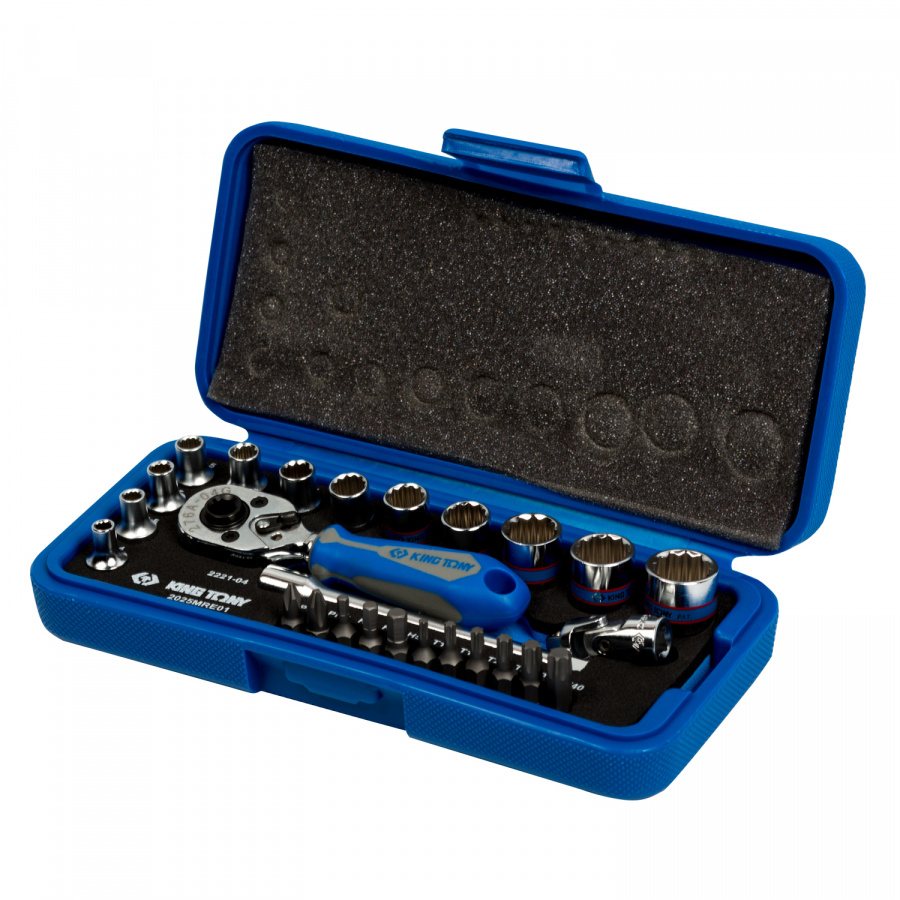 - Набор KING TONY торцевых головок с принадлежностями 1/4", двенадцатигранные, 41730 мм, 26 предметов