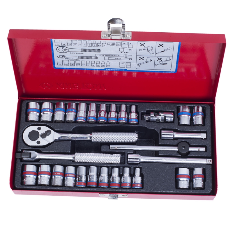 Набор KING TONY торцевых головок с принадлежностями 1/4", шестигранные, 43438 мм, 5/32"-1/2", 30 пре