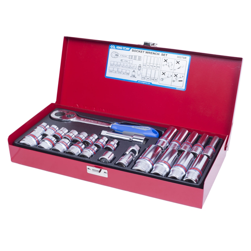 - Набор KING TONY торцевых головок с принадлежностями 3/8", двенадцатигранные, 1/4"-13/16", 26 предмет