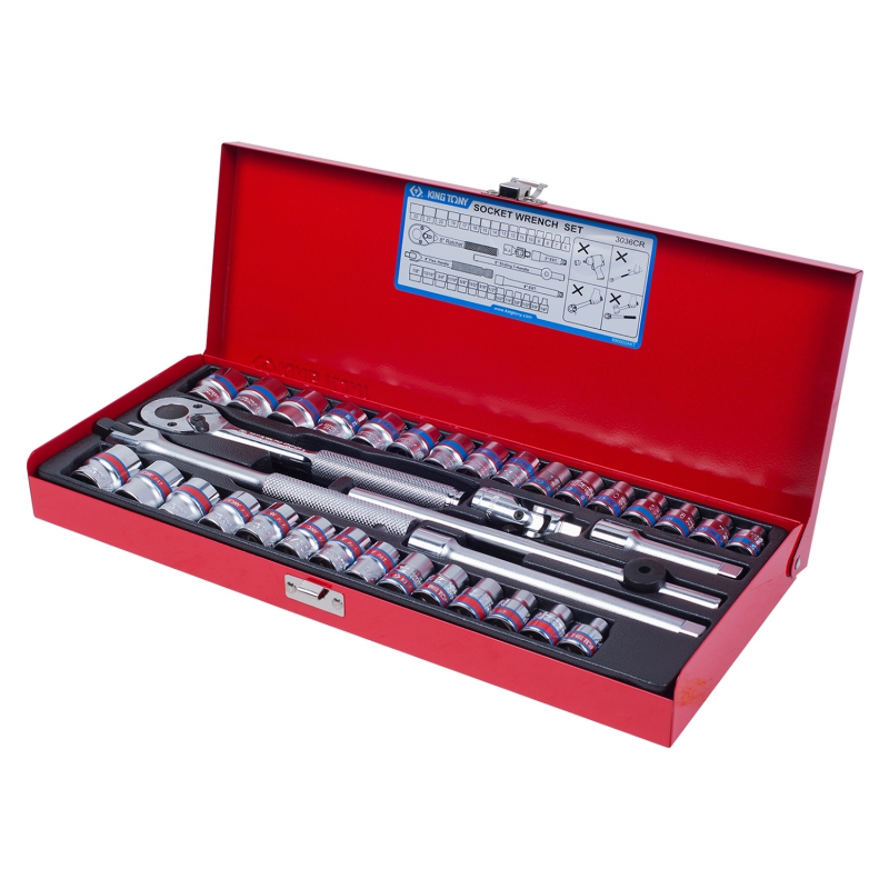 - Набор KING TONY торцевых головок с принадлежностями 3/8", двенадцатигранные, 44713 мм, 1/4"-13/16",