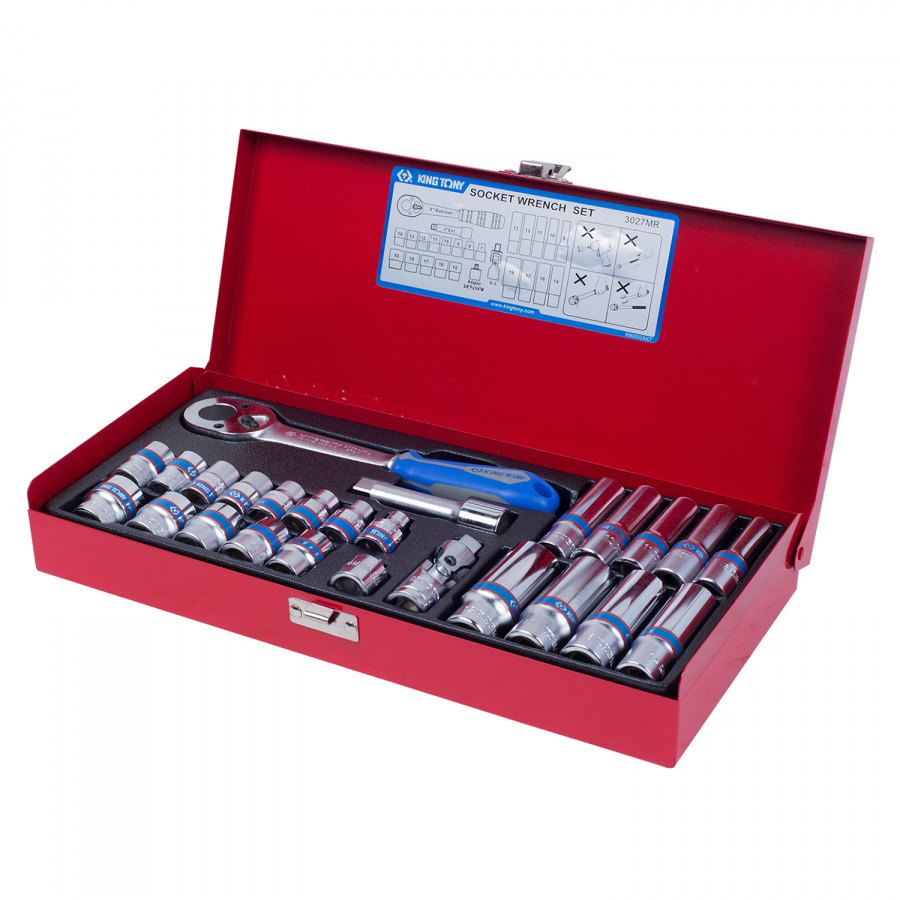 - Набор KING TONY торцевых головок с принадлежностями 3/8", двенадцатигранные, 7-19 мм, 26 предметов