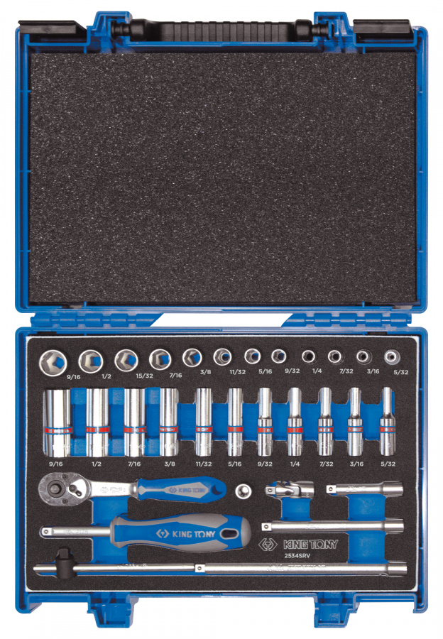 - Набор торцевых головок с принадлежностями 1/4", шестигранные, 5/32"-9/16", 31 предмет KING TONY 2331